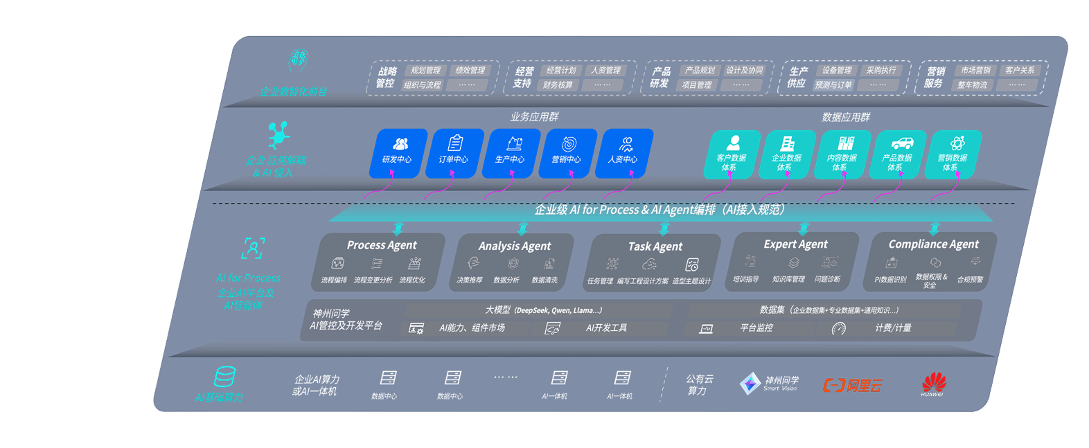 端到端的一站式AI工作空间深度融合了从企业战略规划到日常经营的全流程业务板块,,,,定向解决车企内部领域多、、部门多、、、链条长、、、场景碎片化等难题,,,支持车企快速构建以AI为核心的生产力写作体系,,,实现任务执行与AI能力的无缝集成与交互